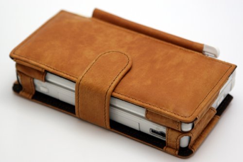 ニンテンドーDSライト用(DSLite用)極上本牛革ケースキャメル色レザー×ブラウンステッチ