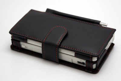 任天堂DS lite用アクセサリー・極上本牛革DSケース・ブラックレザー×オレンジステッチ