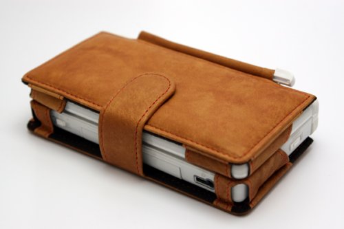 ニンテンドーDS lite用アクセサリー・極上本牛革DSケース・キャメル色レザー×オレンジステッチ